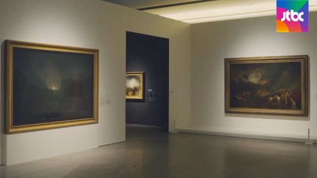 [정우철 도슨트: 제가 처음으로 소개할 작가는 윌리엄 터너라는 작가인데요. 영국을 대표하는 화가 중의 한 명이에요. 예를 들면 영국의 화폐에도 얼굴이 새겨져 있을 정도로 유명합니다. 이번 전시에 터너 공간이 아예 따로 마련되어 있는데요. 터너의 별명이 빛의 화가예요, 빛의 화가. 그래서 터너는 자연의 살아 움직이는 진짜 현상을 담고 싶었던 거예요. 빛과 색채를. 그래서 그런 시도가 당시에는 굉장히 획기적이었기 때문에 이후에 등장하는 그 유명한 인상주의 화가들에게 큰 영향을 주게 되죠. 이 터너는 자연현상을 움직이는 자연현상을 관람자에게 그대로 전하고 싶어 했어요. 그래서 저렇게 화면에 보이는 것처럼 실제로 아침에 뜨는 태양이나 지는 노을들을 바깥에서 캔버스를 직접 펼쳐놓고 그림을 그린 거예요.그전에는 보통 실내에서 많이 그렸거든요. 그래서 이런 터너의 그림은 전시장 앞에 딱 서서 그림 앞에 서서 내가 진짜 저 자연 앞에 있다라는 마음으로 보시면 좋을 것 같아요. 그리고 또 터너는 어린 시절부터 굉장히 천재로 알려져 있었어요.미술 재능이 굉장히 뛰어났는데 그래서 젊은 시절부터 영국의 왕립미술아카데미에서 원근법 교수로 활동했습니다. 그래서 이번 전시에 가면 조금 특이하게도 당시 수업시간에 썼던 그 자료들을 만나볼 수 있어요.]