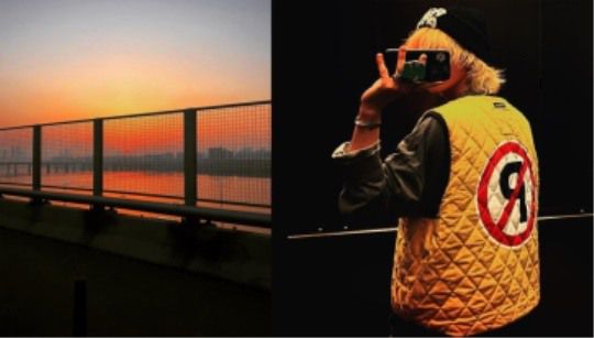 사진 속 지드래곤은 붉은 노을을 바라보고 있는 듯하다. 지드래곤은 사진을 멋지게 찍어 자신만의 감성을 팬들과 공유하고 있다.
