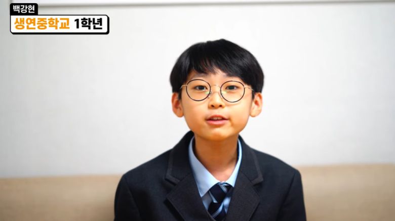 최근 유튜브 채널 '백강현'에는 '생연중 1학년 백강현 학생이 소개하는 회천초 이정희 교장선생님'이라는 제목의 영상이 업로드 됐다. 해당 영상에서 백강현은 교복을 입고 있어 눈길을 끌었다.
