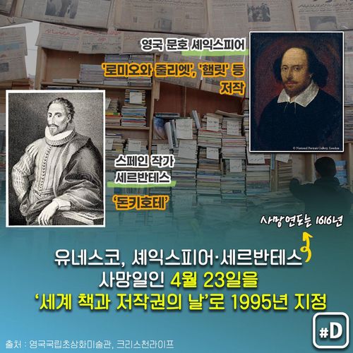 유네스코는 이들을 기리고자 이날을 세계 책의 날로 1995년에 지정했습니다.