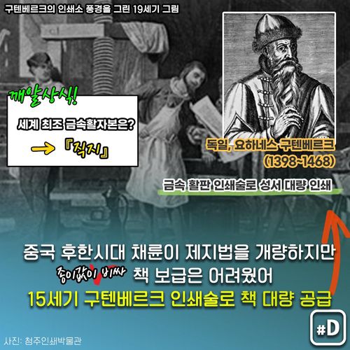중국 후한 때인 서기 105년 채륜(50?∼121년)이 기존 제지법을 개량하면서 인쇄가 쉬워졌습니다. 하지만 종잇값이 비싸 종이책의 대량 보급은 쉽사리 이뤄지지 못했습니다.