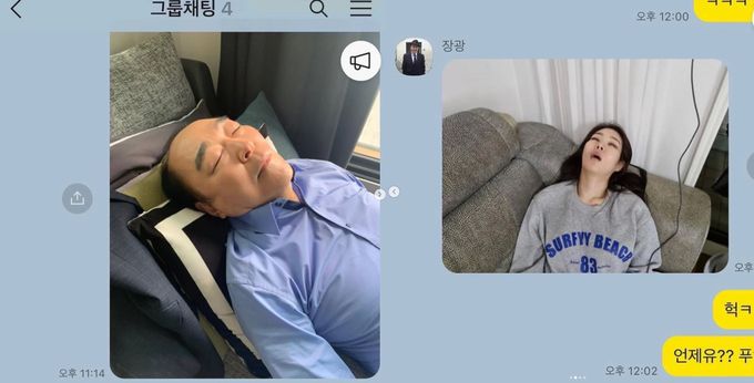 공개된 사진에는 미자가 가족들과 나눈 대화가 담겨 있다. 특히 해당 대화 속 미자는 아빠인 배우 장광이 자는 사진을 공유해 개구쟁이 딸의 면모를 드러냈다. 그러나 장광은 이에 맞서 미자가 눈을 뜬 채 입을 벌리고 자는 모습으로 복수해 웃음을 자아냈다.