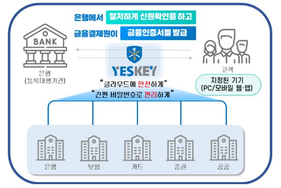 금결원 관계자는 "구공인인증서의 신뢰성은 유지하고 보안성과 편의성은 강화한 YESKEY 금융인증서가 증권·카드·보험 등 전 금융분야로 확대돼 국민의 안전한 금융생활을 지원하는 국민인증서로 자리 잡아 가고 있다"고 말했다.