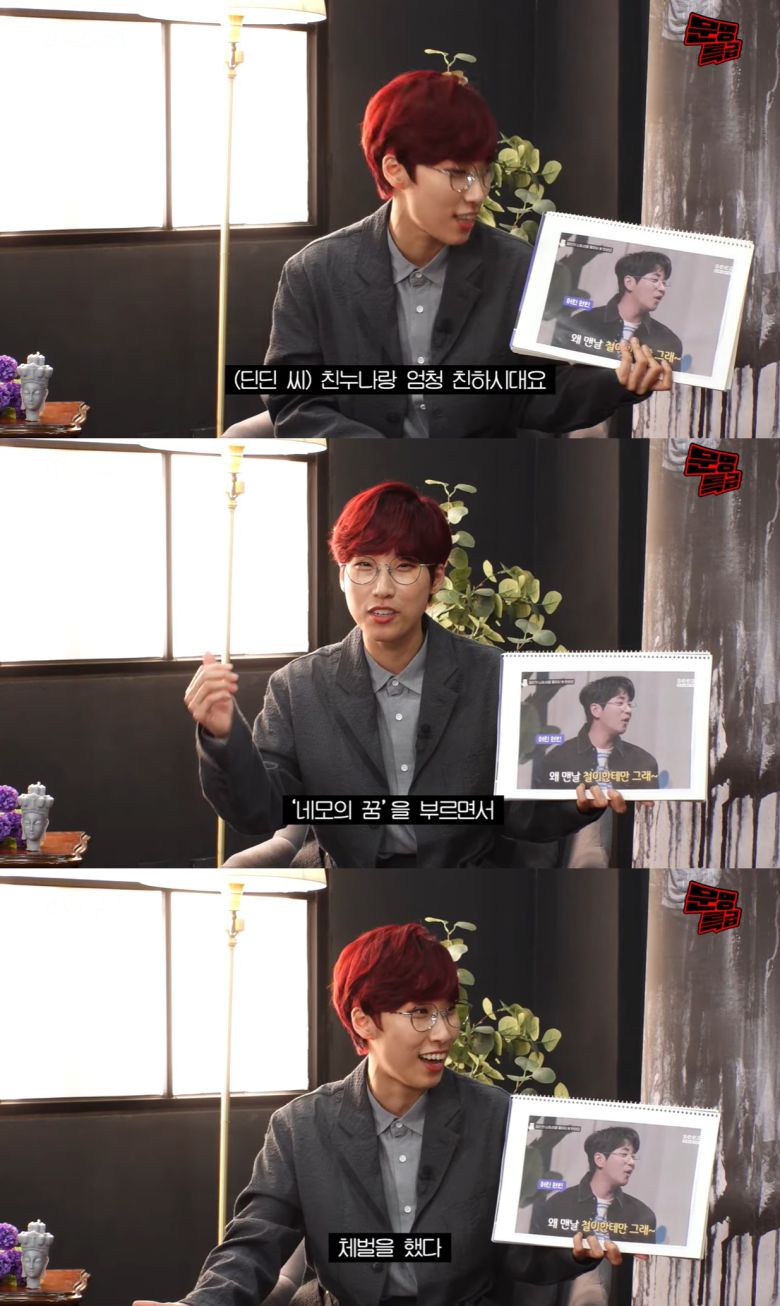 공개된 영상에서 재재는 "중학교 때부터 딘딘 씨네 많이 갔다고 들었다"면서 "딘딘 씨 친누나랑 절친이시라고 하더라"고 말했고, 구교환도 "딘딘 씨랑 친해요?"라며 관심을 보였다.