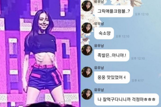 지난 26일 한 온라인 커뮤니티에는 '트위터에서 논란인 최근 유나 사태'란 제목의 글이 올라왔다. 해당 글의 글쓴이는 "영상으로 보면 더 심하다"며 "가만히 서 있기만 해도 갈비뼈가 보인다"고 우려했다.