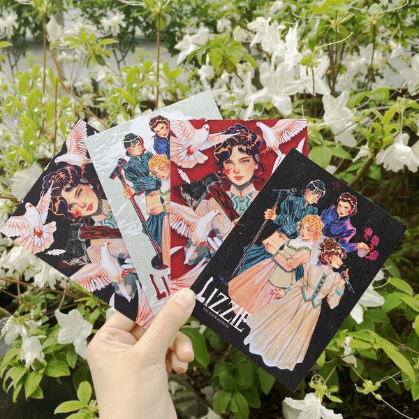 뮤지컬 <리지>는 1892년 미국 매사추세츠에서 일어난 미제 살인 사건 '리지 보든 사건' 실화를 모티브로 만들어진 작품으로, 매 공연 객석을 뜨겁게 달구고 있는 중이다. 이에 ㈜쇼노트는 관객들이 보내준 사랑에 보답하기 위해 일러스트 엽서를 제작했다.