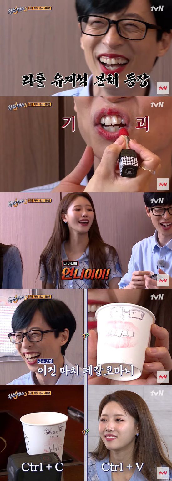 이후 입술이 찍힌 종이컵에 눈과 코를 그린 전소민은 유재석과 똑같이 생긴 종이컵을 만들어내 웃음을 선사했다. 삐뚤빼뚤한 치열을 그린 전소민은 "재석 오빠다"라고 말했고 유재석도 "똑같다"며 자신의 얼굴과 종이컵을 비교하기에 나섰다.