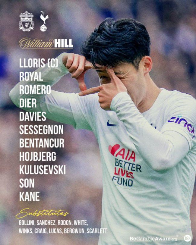 원정팀 토트넘은 3-4-2-1 포메이션으로 시작한다. 해리 케인을 필두로 손흥민과 데얀 쿨루셉스키가 전방에서 득점을 노린다. 허리에는 라이언 세세뇽, 피에르-에밀 호이비에르, 로드리고 벤탄쿠르, 에메르송 로얄이 포진한다. 3백은 벤 데이비스, 에릭 다이어, 크리스티안 로메로가 구성하며 골키퍼 장갑은 위고 요리스가 착용한다.
