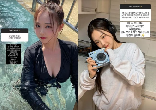 특히 한 팔로워는 "쌍수한지 2주 됐다"며 "라인이 너무 큰거같아요ㅠㅠ"라고 고민을 전했고, 홍영기는 "시간이 지나면서 자리잡기 시작하면 예뻐질거야. 언니 붓기 빠지고 자리잡는데 1년정도 걸려쩌.."라고 경험담을 공유하기도 했다.
