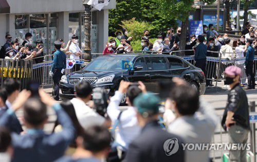 (서울=연합뉴스) 임헌정 기자 = 윤석열 대통령이 탄 차량이 10일 서울 용산구 삼각지 경로당 앞으로 도착하고 있다. 2022.5.10 kane@yna.co.kr ▶제보는 카카오톡 okjebo▶연합뉴스 앱 지금 바로 다운받기~▶네이버 연합뉴스 채널 구독하기 <저작권자(c)연합뉴스. 무단전재-재배포금지.>이 기사의 카테고리는 언론사의 분류를 따릅니다.0공유하기