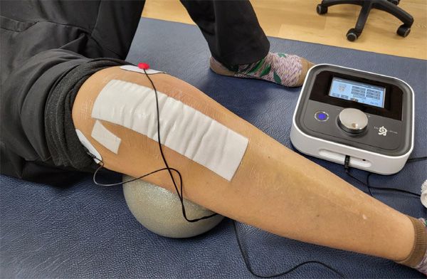 무릎 인공관절치환술 후 운동할 때 NMES 모드를 함께 사용하면 근력 및 지구력 강화에 효과가 좋다. [사진 제공 = 제일정형외과병원] |