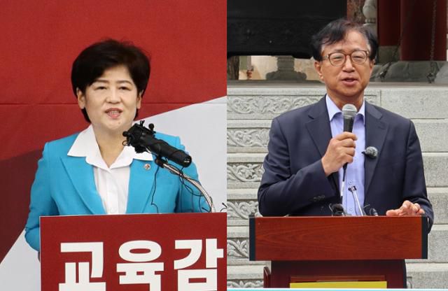 강은희(왼쪽) 엄창옥 대구시교육감 후보. 정광진 기자 kjcheong@hankookilbo.com |