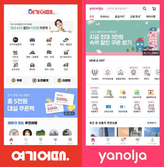 ‘야놀자’의 정보를 크롤링한 ‘여기어때’가 대법원에서 무죄 판결을 받았다. [모바일앱 캡처] |