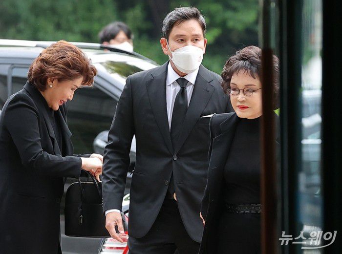 이날 오후 4시 20분께 신세계그룹 총수 일가가 빈소를 찾았다. 이명희 신세계그룹 회장은 정용진 신세계그룹 부회장, 정유경 신세계백화점 총괄사장과 함께 조문에 나섰다. 이날 정용진 부회장의 배우자인 한지희 씨도 함께 조문했다.