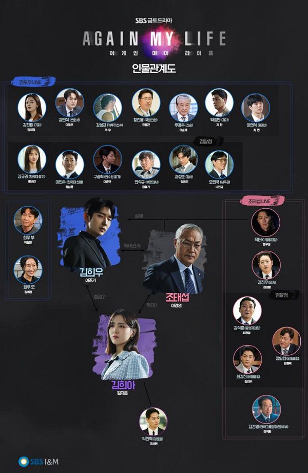 SBS 금토드라마 '어게인 마이 라이프'(연출 한철수 김용민/극본 제이 김율/각색 이병헌/제작 삼화네트웍스 크로스픽쳐스)(이후. '어겐마')는 인생 2회차, 능력치 만렙 열혈 검사의 절대 악 응징기. 거악 척결을 향해 거침없이 펀치를 날리는 사이다 폭격, 쫄깃한 긴장감을 자아내는 두뇌싸움이 금요일, 토요일 밤의 열기를 드높이며 전국, 수도권 시청률 10%의 벽을 뚫는 저력을 드러냈다. 특히 인물관계도 속 김희우(이준기 분)를 중심으로 형성된 케미가 60분 러닝타임을 순삭(순간 삭제)하며 시청자들의 호평을 얻고 있는 가운데 정의구현 운동공동체에서 속내를 알 수 없는 미스터리한 케미까지 인물들의 관계성 맛집을 분석했다.
