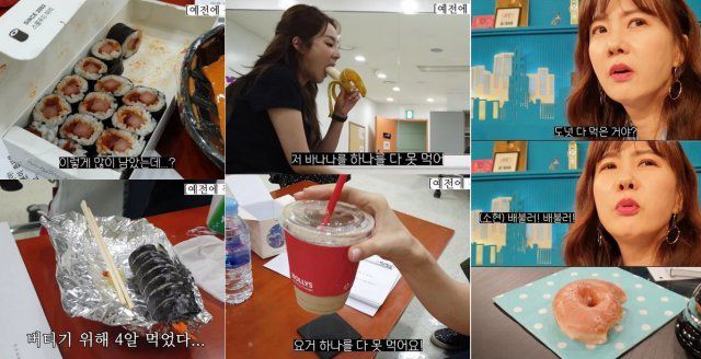 “배불러, 배불러.” ‘다 먹은 거냐’는 물음에 방송인 박소현은 두 입만 베어 문 도너츠를 내려놓은 뒤 이같이 말했다. 그는 또 다른 영상에서 치킨을 ‘두 조각’만 집어먹고는 “배불러”라고도 했다. 아침 식사로는 아이스라테 한 잔을 다 마시지 못한다고 한다. 개그우먼 김숙이 공개한 박소현의 평소 식사 모습이다.