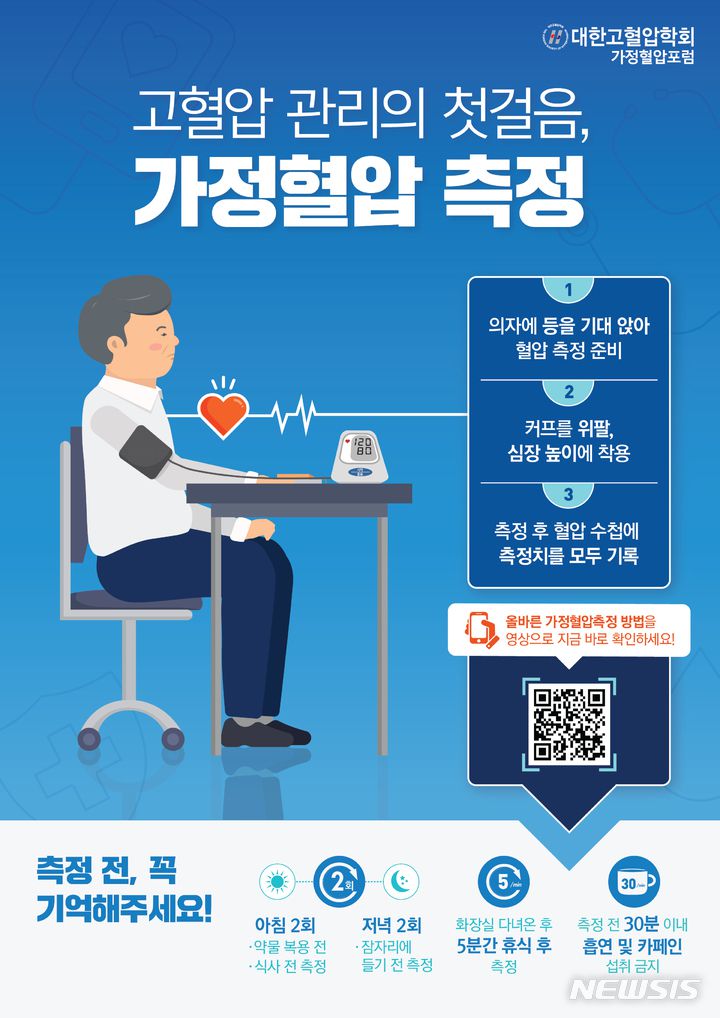 [서울=뉴시스]5월17일은 세계고혈압연맹이 주관하는 ‘세계 고혈압의 날’이다. 고혈압에 대한 인식을 높이고 관리의 중요성을 강조하기 위해 제정됐다. 최근 가정에서 환자가 직접 잰 혈압의 중요성이 커지고 있는 만큼 평소 정확한 혈압 측정법을 숙지하고 있는 것이 고혈압 관리에 도움이 된다. (이미지= 대한고혈압학회 제공) 2022.05.13 |