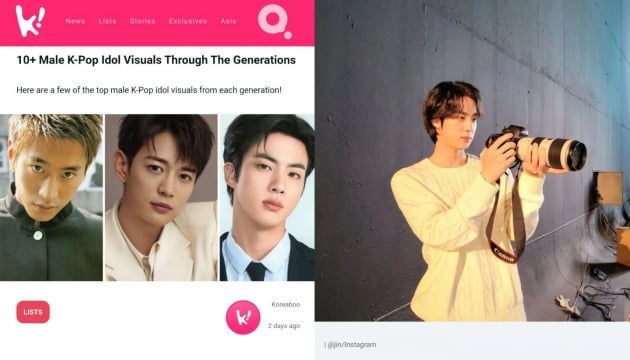방탄소년단(BTS) 진이 미의 남신다운 눈부신 외모로 '세대를 아우르는 K-Pop 남성 아이돌 비주얼' 중 한명으로 선정됐다.