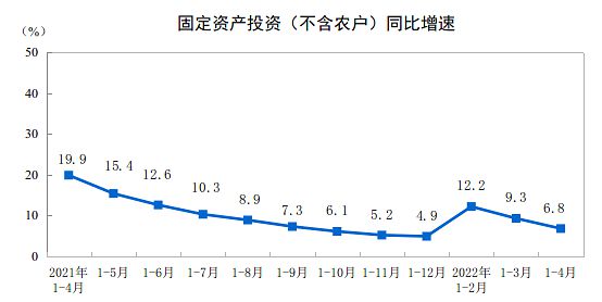 수출, 소비와 더불어 중국의 3대 경제 성장 엔진으로 평가되는 고정자산투자는 올 1~4월에 작년 같은 기간보다 6.8% 증가했다. 전달 발표된 1~3월 증가율 9.3%보다 둔화한 것이다. 중국 당국이 인프라 투자 확대 등 인프라 건설에 열을 올리고 있지만 지방정부에서 효과적으로 집행되지 않고 있다는 분석이 나온다.