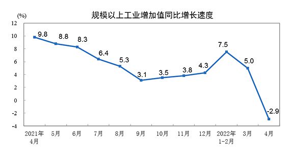 중국 4월 소매판매 -11.1%·산업생산 -2.9%