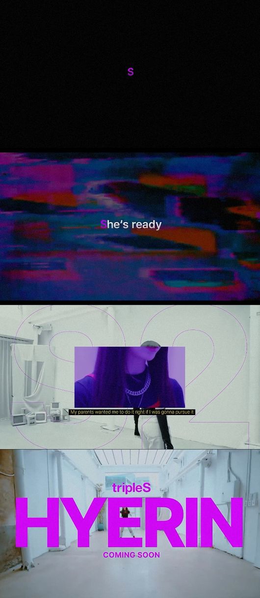 검은 바탕에 등장한 보라색 'S'는 'She's ready'란 문구로 이어지며 호기심을 자극했다. 정혜린은 아이돌을 꿈꾸게 된 계기는 물론 트리플에스 합류에 대한 다부진 각오를 드러내며 팬들의 환호를 불렀다.