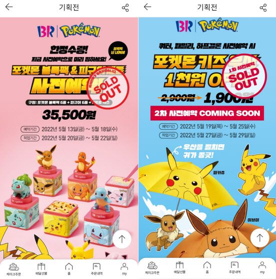 배스킨라빈스가 최근 진행한 포켓몬 굿즈 관련 예약 판매 행사가 속속 조기 종료되고 있다.(사진=해피오더 앱 캡처) |