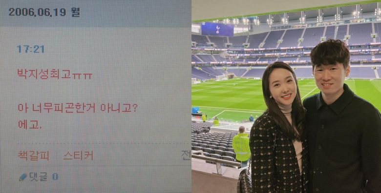 공개된 사진 속에는 "박지성 최고 ㅠㅠ"라면서 "내일은 스위스! 이길 수 있을까, 박지성 힘내삼"이라고 쓰인 싸이월드의 일기장 모습이 담겼다.
