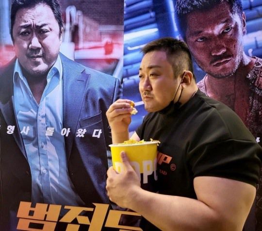마동석, 더 두꺼워진 팔뚝에 반전 러블리 미소 "팝콘 라지사이즈 맞죠?"