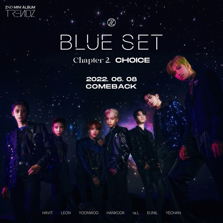 이와 함께 23일 0시 공식 SNS를 통해 컴백을 공식화하는 티저 이미지를 공개했다. 사진 속에는 한층 성숙해진 비주얼을 발산하는 트렌드지와 함께 앨범명 ‘BLUE SET Chapter 2. CHOICE’ 그리고 컴백 날짜를 나타내는 ‘2022.06.08’ 숫자가 담겨있다. 트렌드지는 압도적인 아우라와 7인 7색의 다채로운 카리스마를 드러냈다.