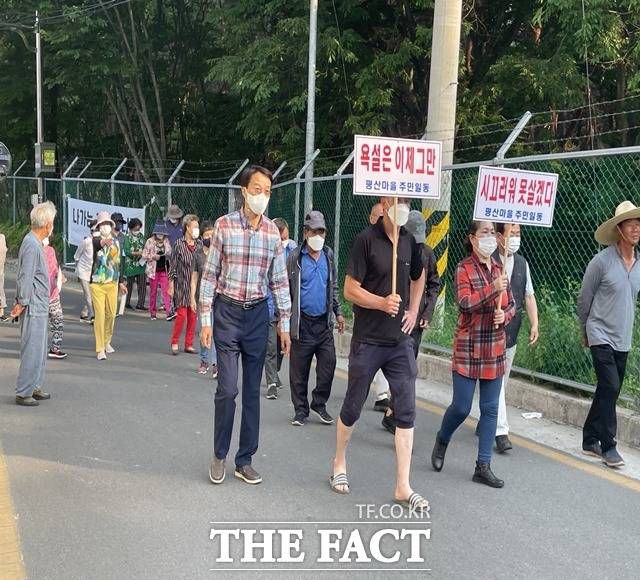 평산마을 주민 30여 명은 24일 오후 5시 평산마을회관 앞에서 "주말이 지옥같다. 이제는 참을 수 없다"며 피켓을 들고 행진시위를 준비했다.