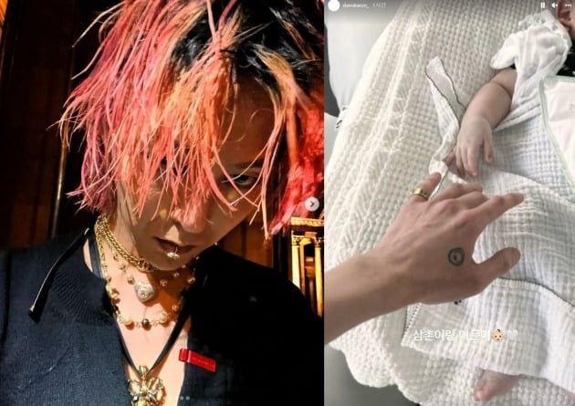 공개된 사진에는 지드래곤이 권다미, 김민준 부부의 집을 찾아 조카를 만난 모습이 담겨있다.