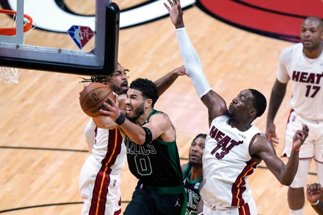보스턴은 26일(한국시간) 미국 플로리다주 마이애미 FTX 아레나에서 열린 2021-22 NBA 동부 콘퍼런스 파이널 5차전에서 마이애미 히트를 93-80으로 제압했다. 시리즈 전적 3승 2패를 만든 보스턴은 남은 6, 7차전에서 1승만 보태면 12년 만에 NBA 파이널 무대에 진출한다.