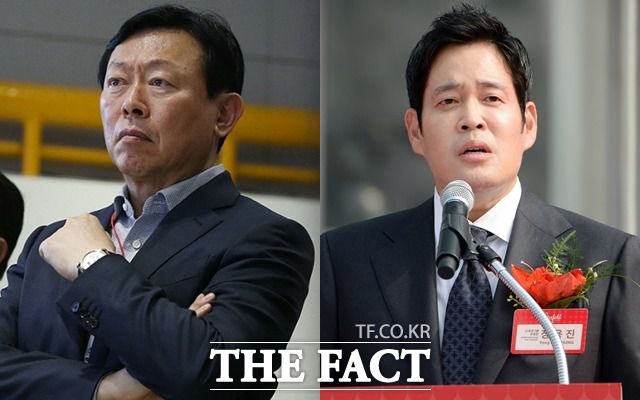 신세계그룹과 롯데그룹(롯데쇼핑)이 연이어 투자방안을 발표했다. 신세계는 향후 5년간 20조 원을 투자해 사업 강화에 나서겠다고 밝혔고, 롯데쇼핑은 같은 기간 유통부문에 8조1000억 원을 투자한다. 사진은 신동빈 롯데그룹 회장(왼쪽)과 정용진 신세계그룹 부회장. /더팩트 DB |