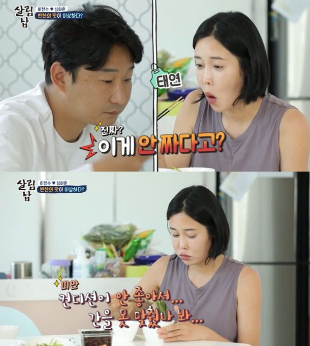심하은은 비염으로 맛이 잘 느껴지지 않아 감으로 간을 맞춘 것. 그는 "컨디션이 안 좋아서 간을 못 맞췄나 봐"라고 사과했다. 이어 심하은은 "오빠 만나기 전에 코 성형했는데 구축 와서 코 찌그러졌었잖아"라고 했다.