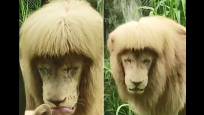 중국 광저우 동물원에 사는 한 사자가 특이한 헤어스타일로 눈길을 끌고 있습니다.