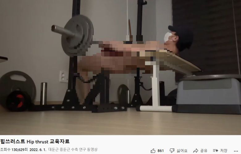 유튜버 맨몸맨이 속옷도 입지 않고 알몸으로 촬영한 운동 영상이 성인 인증을 거치지 않고도 시청할 수 있게 노출돼 있다(모자이크 처리함). 맨몸맨 유튜브 캡처 |