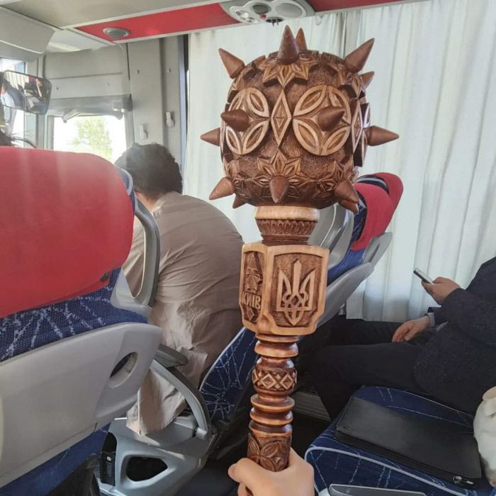 이 대표는 이날 SNS에 “우크라이나 의원님들이 우리 방문단의 선물에 대한 답례품으로 가시 달린 육모 방망이 비슷한 걸 주셨다”며 “코자크 족 지도자가 들고 사용하는 불라바라는 철퇴라고 설명을 들었다”고 밝혔다. 이 대표는 “자유의 영원한 존립을 위해 잘 간직하겠다”며 철퇴 사진을 함께 올렸다.