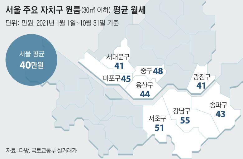 잠시 현실로 돌아와볼까. ‘미친 집값’ 탓에 우리나라 청년 세대의 주거 환경은 나날이 팍팍해지는 중이다. 통계청에 따르면 우리 나라 1인 가구 수(2020년 기준)는 664만으로 세 가구 중 하나(31.7%) 꼴이며, 이 중 절반은 원룸·빌라·다세대 주택 등에 사는 것으로 나타났다. 특히 30세 미만 ‘청년 1인 가구’의 경우, 월세 32만원에 29.93㎡(9.1평)짜리 집에 거주하는 것으로 조사(2021년 1분기)됐다.