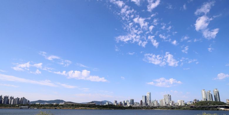 14일 오전 서울 광진구 뚝섬한강공원 상공 위로 푸른 하늘이 펼쳐져 있다. /뉴스1 |
