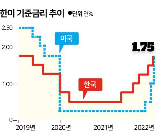 이날 FOMC 위원들은 점도표(금리 전망을 점으로 표시한 지표)를 통해 올해 미국의 기준금리가 연 3.25~3.5%(중간값 3.4%)까지 오를 것으로 내다봤다. 3월 전망(1.75~2.0%)보다 1.5%포인트나 상승한 수치다. 미국 기준금리가 3.5%가 되려면 연준은 올해 남은 네 차례의 FOMC에서 금리를 1.75%포인트 더 끌어올려야 한다.