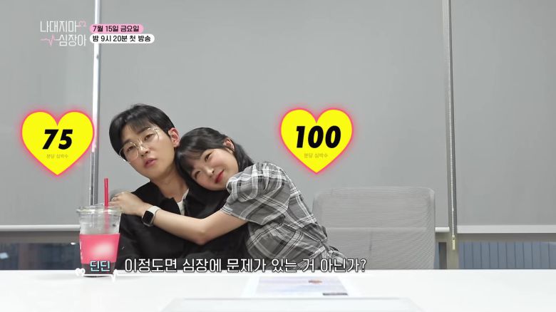 찐친인 듯 찐친이 아닌 듯한 두 사람은 '분당 심박수 체크' 실험도 이어나갔다. 손깍지를 끼고 포옹하는 등 스윗한 포즈를 취해도 차분한 딘딘의 심박수에 모두가 놀라움을 표했다. 딘딘은 "이 정도면 심장에 문제 있는 거 아니야?"라며 의아해 하는 모습을 보였다. 반면 조현영은 자신의 머리를 만지는 딘딘의 손길에 짜증이 폭발했는지 심박수를 수직 상승시켜 폭소를 유발했다.