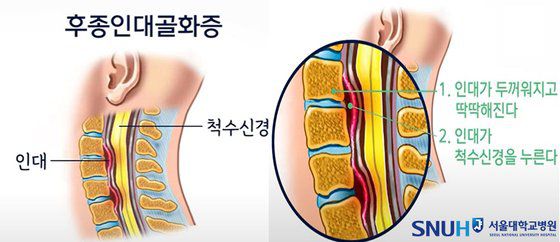 경추(목뼈)에 주로 나타나는 후종인대골화증은 대표적인 경추 질환으로 꼽힌다. 방치하면 팔·다리 마비까지 이어질 수 있지만, 발병해도 목 디스크로 오인하는 경우가 많다고 한다. 서양인보다 한국인에게서 100배가량 높은 발생률을 보이는 만큼 주의가 필요하다. 이창현 서울대병원 신경외과 교수의 도움말을 받아 후종인대골화증의 증상과 치료법을 정리했다.