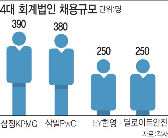 삼일PwC는 올해도 지난해와 비슷한 수준(385명)인 380명 내외의 신입 회계사를 뽑을 예정이다. EY한영과 딜로이트안진은 각각 250명의 신입 회계사 채용을 결정했다.