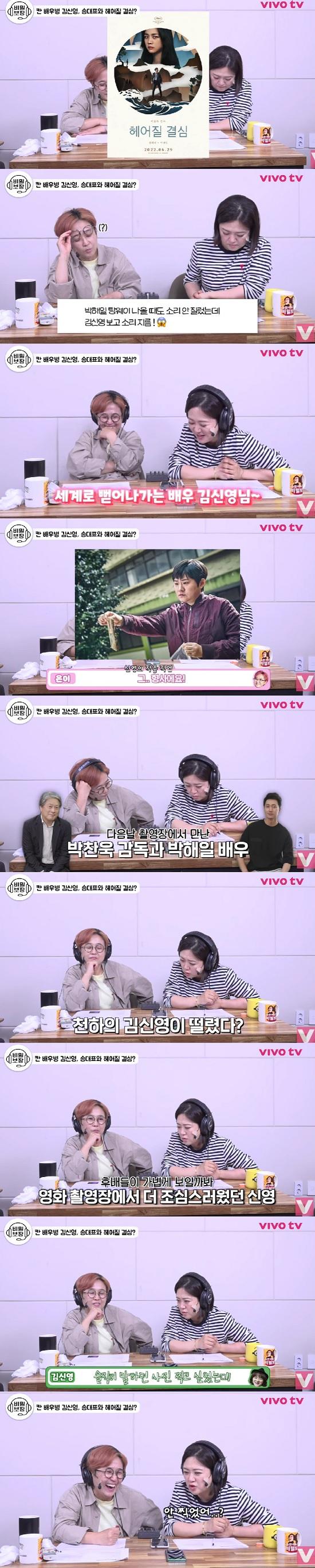 송은이와 김숙은 김신영에게 전화연결을 진행했고, 김신영에게 "여기저기서 극찬이 자자하다. '헤어질 결심' 치면 김신영이 나온다"라며 영화 비하인드를 물었다.