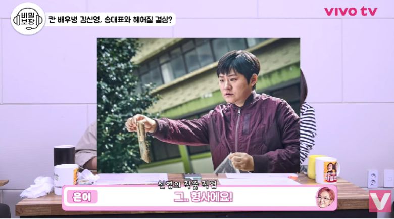 김신영은 "첫 컷을 찍자마자 첫 컷에 오케이가 됐다"라고 전해 놀라움을 안겼다. 김숙은 "천하의 김배우님이 떨렸냐"라고 물었고, 김신영은 "긴장을 했다. 왜냐하면 좀 센 척을 해야 한다. 코미디언으로서 가벼운 모습을 보여주면 다음에 영화를 할 후배들은 다 그런 모습이라는 생각을 심어줄까봐"라고 답했다. 이어 김신영은 "박해일 오빠 되게 좋아하고 사진 찍고 싶었는데 누가 찍자고 하기 전까지 안 찍었다. 찍어도 되는데 그렇게 하고 싶지 않았다"라고 전했다.