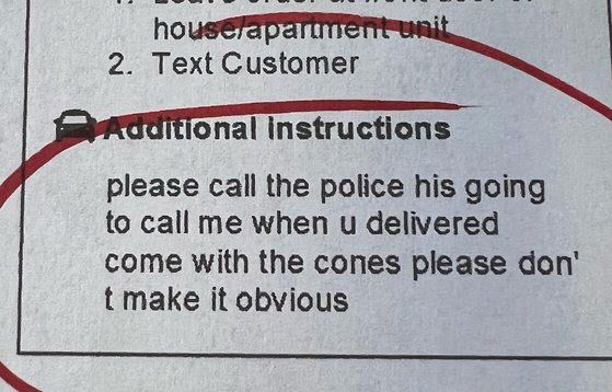 미국에서 아파트에 감금된 후 성폭행 당한 한 여성이 배달앱 요청사항을 통해 경찰을 불러달라고 해 가까스로 구출됐다. 사진은 해당 여성이 배달앱에 기재한 요청사항. (사진=페이스북 캡처) |