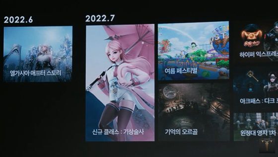 이날 행사에서는 차주부터 오는 9월까지 적용될 신규 콘텐츠와 기존 기능 개선에 대한 소개가 이뤄졌다. 차주 엘가시아 애프터 스토리 추가를 시작으로 7월 신규 스페셜리스트 클래스 ‘기상술사’ 추가, 여름 페스티벌 시작 등 업데이트가 본격화된다. 7월에만 스토리 수집 콘텐츠 ‘기억의 오르골’, ‘하이퍼익스프레스 플러스’, ‘아크패스: 다크 프리스트’, ‘원정대 영지 1차 개선, 수련장 개선, 증명의 전장 개선 및 시즌6 돌입, 전서버 커뮤니티 기능 도입, 트라이포트 도감, 승리포즈 시스템 등이 적용된다.