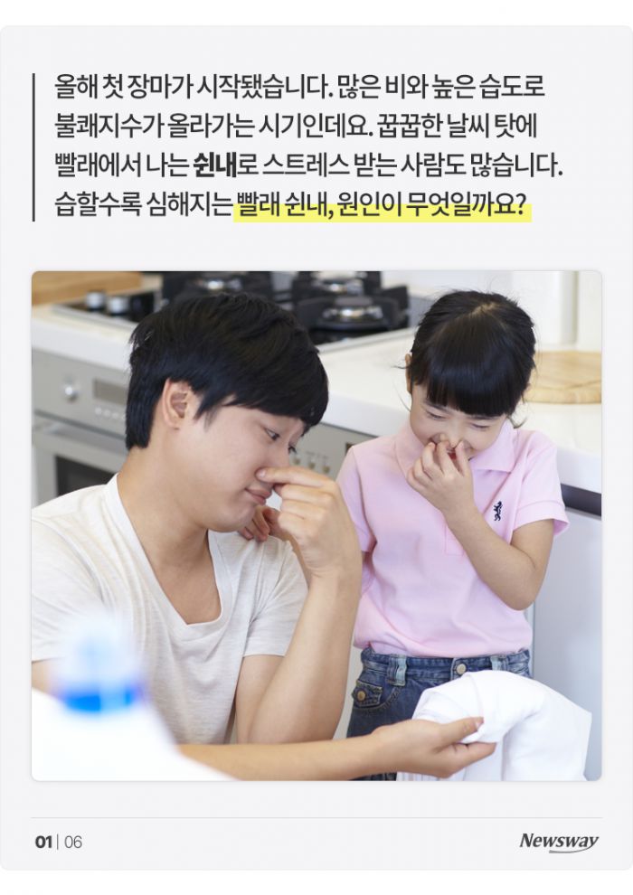 올해 첫 장마가 시작됐습니다. 많은 비와 높은 습도로 불쾌지수가 올라가는 시기인데요. 꿉꿉한 날씨 탓에 빨래에서 나는 쉰내로 스트레스 받는 사람도 많습니다. 습할수록 심해지는 빨래 쉰내, 원인이 무엇일까요?