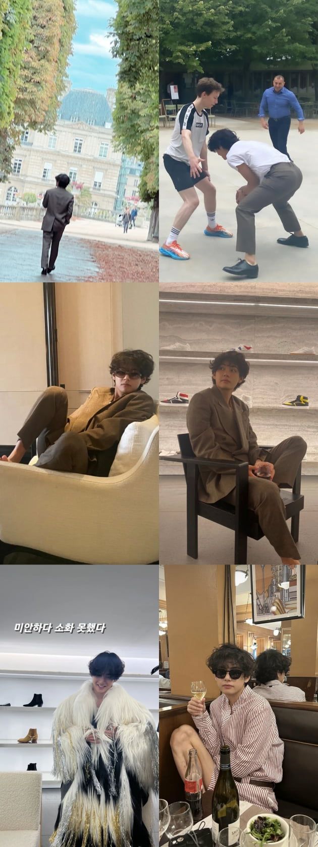 이어 뷔는 몇 시간이 지나지 않아 뷔는 불어로 “파리 오랜만이네”라는 제목으로 여러 장의 사진을 인스타그램 피드에 게재했다.