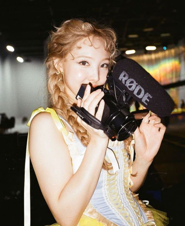 공개된 사진 속 나연은 노란색 공주 드레스를 입고 머리를 땋은 모습. 팀 내 맏이임에도 동안 미모를 과시했다.